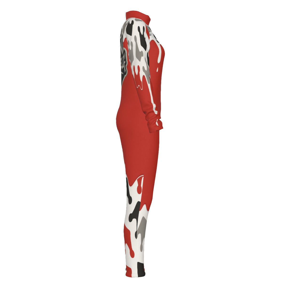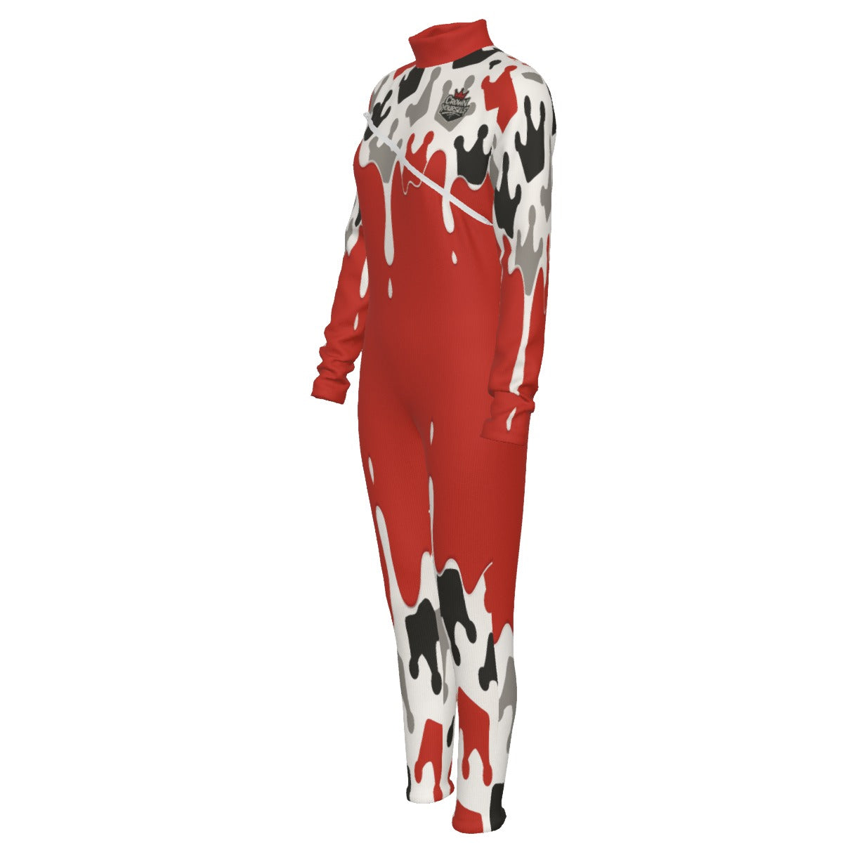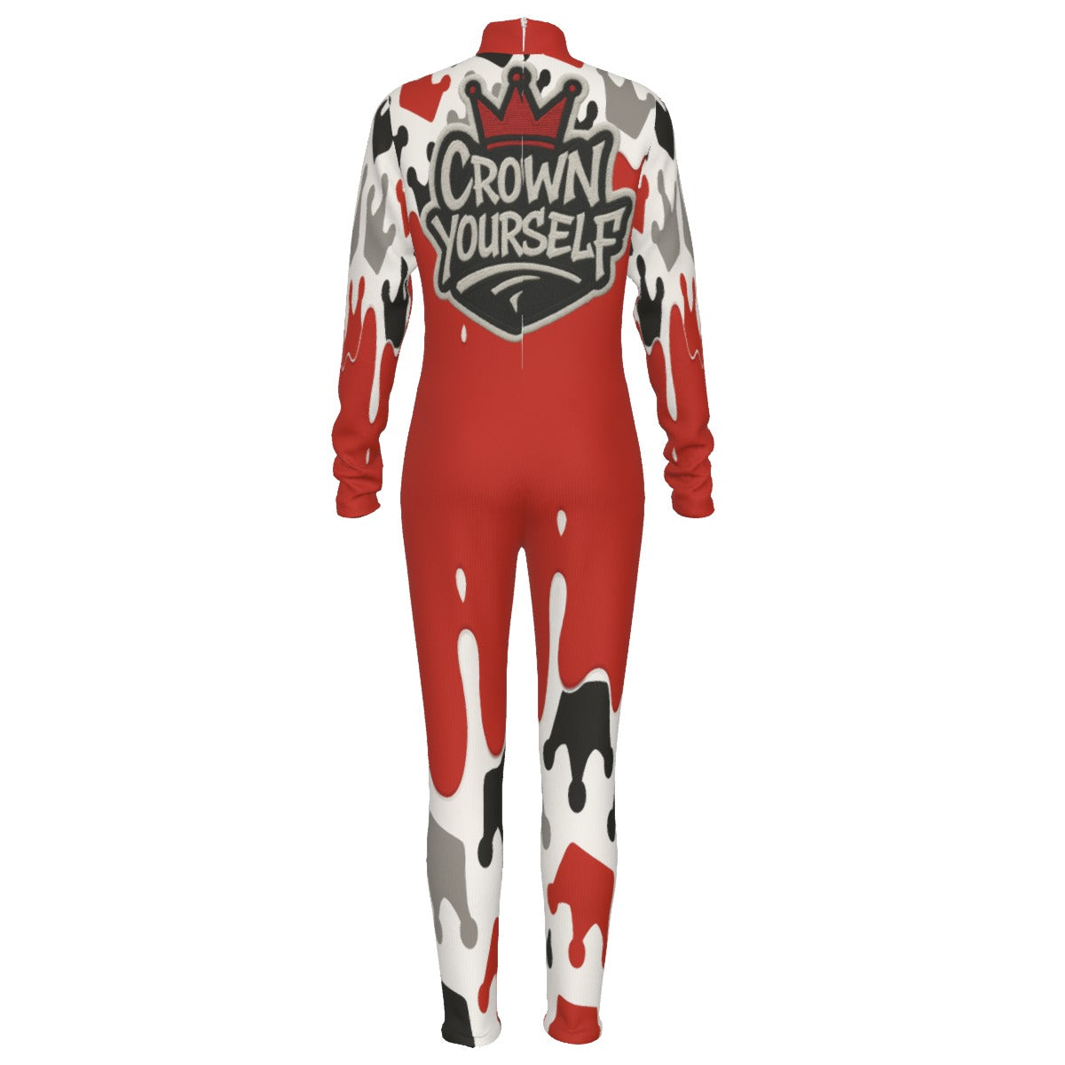 Crown yourself Red Women's Long-sleeved High-neck Jumpsuit With Zipper